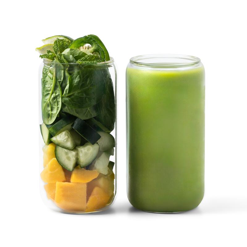 Coconut water, mango, cucumber, organic spinach, mint, jalapeño, lime.