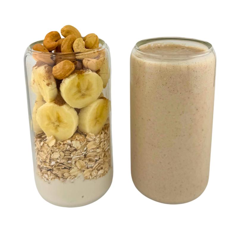 • Banana Bread - Almond milk, banana, gf oats, cashew yogurt, vanilla, cinnamon, nutmeg, maple syrup.