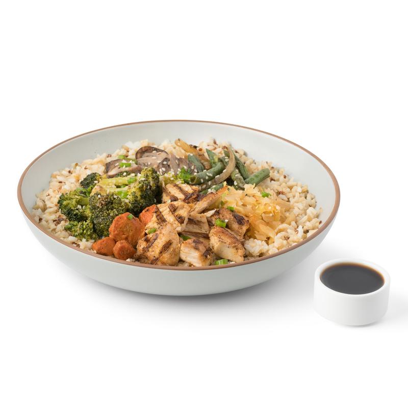 Roasted carrot, spicy broccoli, basil mushroom, vegan kimchi, green onion, sesame, soy-free teriyaki sauce.